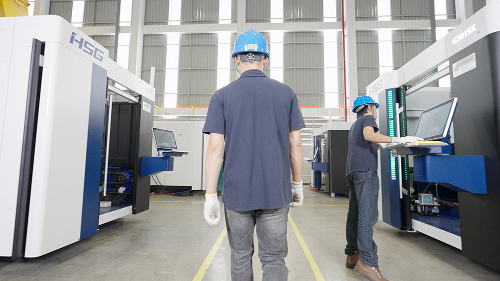 生產區布局40個生產工位,滿足40臺高端切割機同時生產,工廠年產能2000臺激光加工智能裝備,目前主要生產宏山高端板材切割機,如C系列單平臺激光切割機,GX系列雙平臺激光切割機和GH系列高功率激光切割機,未來將不斷結合全球市場需求,研發制造更多機型。