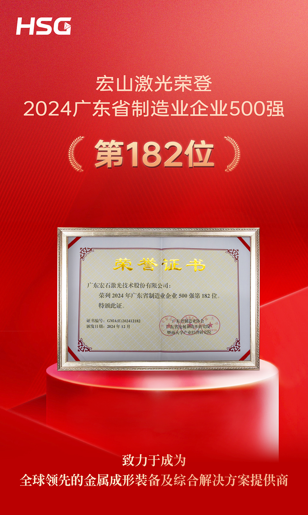 近日,由廣東省制造業協會、暨南大學產業經濟研究院、廣東省發展和改革研究院聯合發布的《2024年廣東制造業500強企業研究報告》正式揭曉榜單。作為全球激光切割技術領域的卓越創新者之一,宏山激光憑借在智能激光制造領域的出色表現與穩健發展,成功位列第182位。這一殊榮不僅體現了行業對宏山激光的高度認可,也彰顯了廣東制造業在高質量發展道路上的強大潛力。