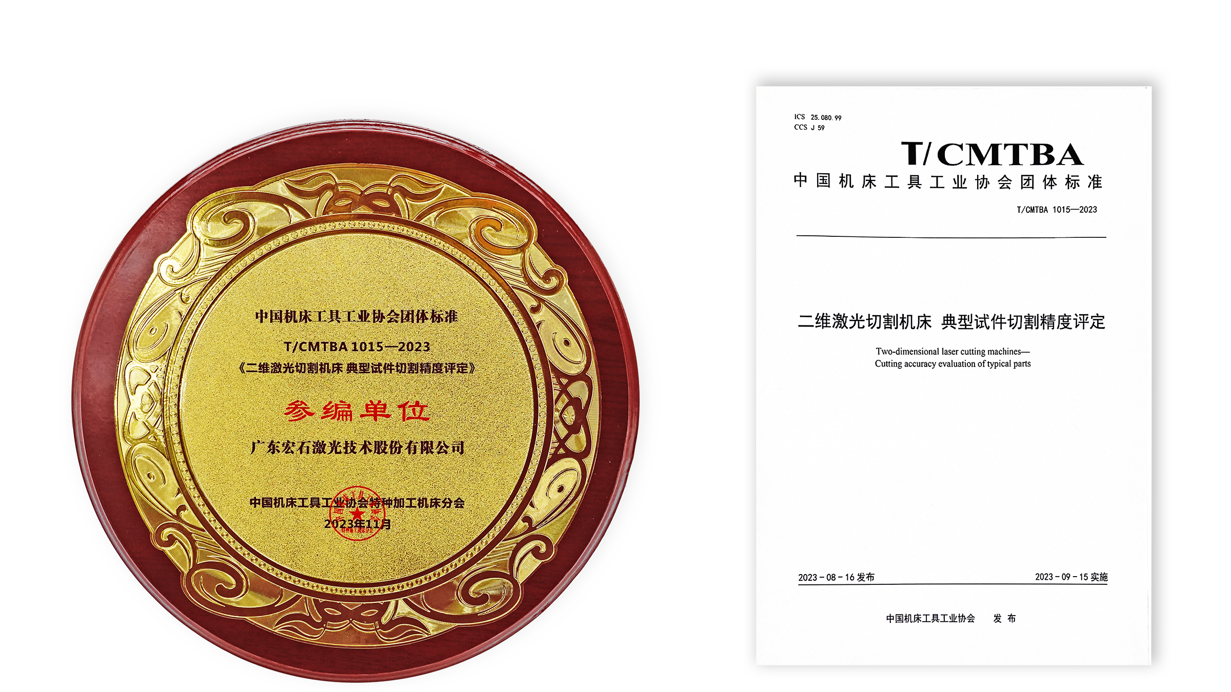 2022年,宏山激光與通快(中國)、大族激光、華工激光等國內激光加工裝備龍頭企業共同起草《二維激光切割機床  典型試件切割精度評定》團體標準。2023年8月標準發布,9月實施。